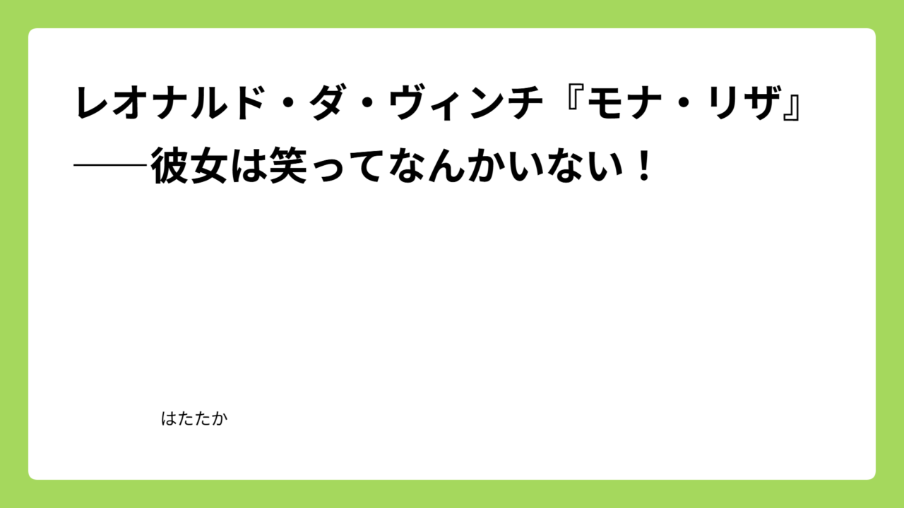 - 《モナ・リザ》が「知っているけど実はよくわからない絵」って理由が分かる。